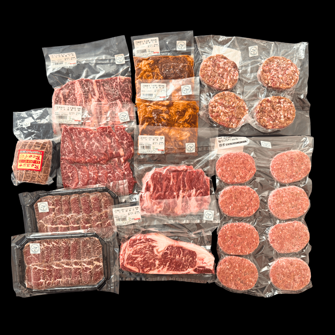 مجموعة متنوعة D – جرب قطعًا مختلفة في عبوة واحدة؛ تحتوي على 8 قطع هامبورغ (80غ لكل منها)، 4 قطع هامبورغ (150غ لكل منها)، لحم متبل 2 عبوة (250غ)، بقايا لحم بقري (250غ)، شريحة سيرلوين (200غ)، شرائح متنوعة (250غ)، شرائح فخذ (250غ)، روست بيف (250غ)، شرائح روست بيف 2 عبوة (70غ).