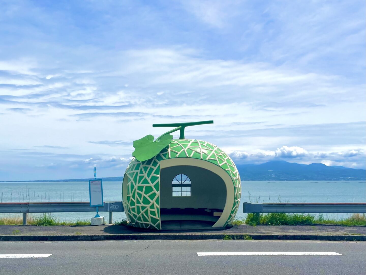 それぞれ普通に撮影しても面白くなるのですが、「井崎バス停」にあるメロンのバス停の背後には有明海が広がっていたり、自然の多い田舎町の風情の中にもバス停があったりと、周りの美しい風景も同時に収めてみますと、上手に良い写真が撮れるでしょう。