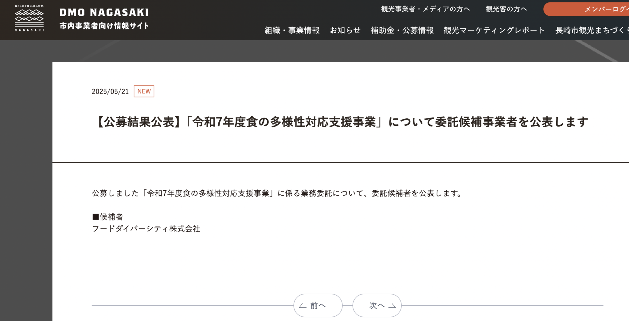 2025年5月21日、DMO NAGASAKIが公募した「令和7年度 食の多様性対応支援事業」において、フードダイバーシティ株式会社が委託候補者として選定された旨が発表となりました。