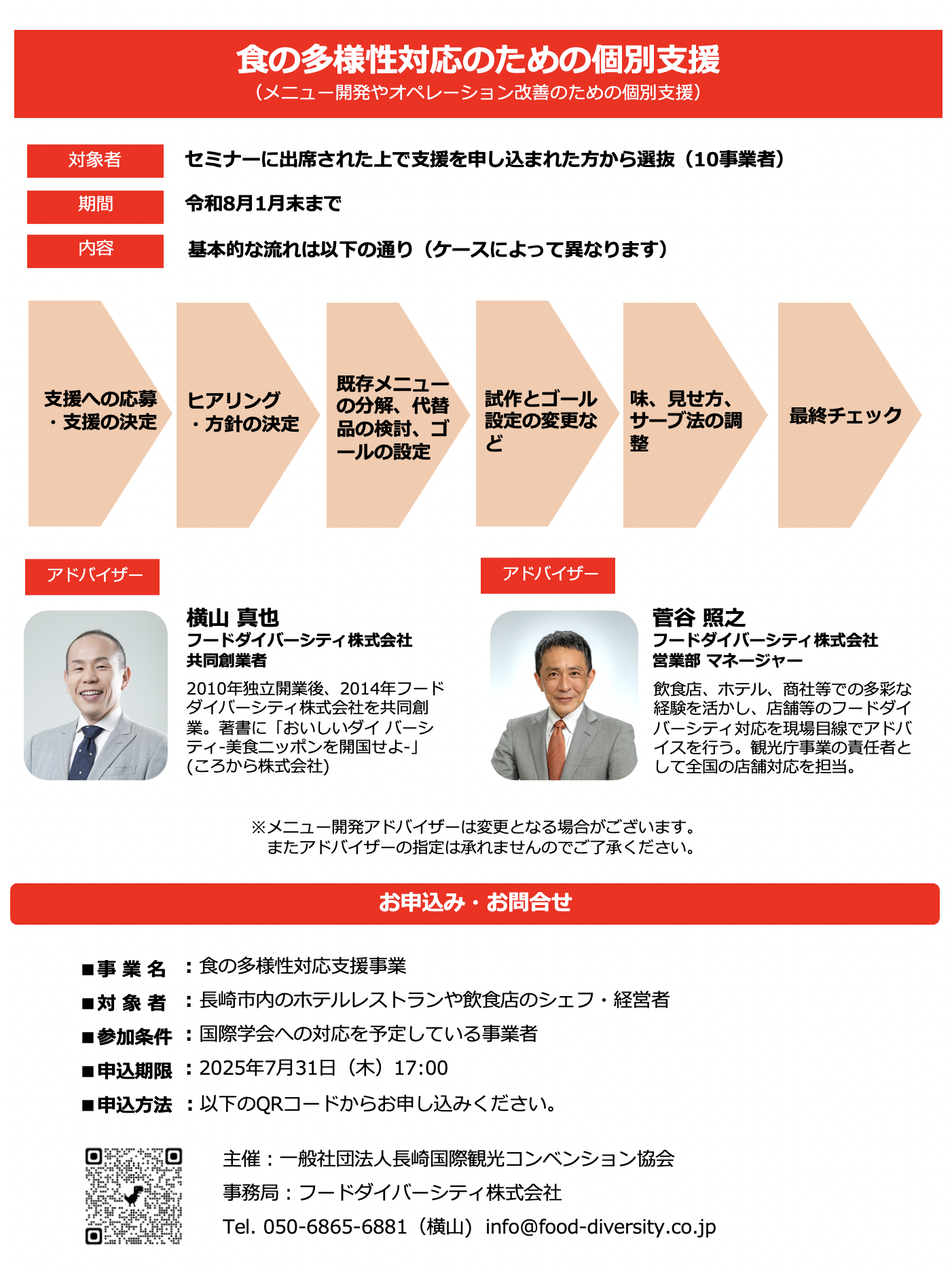 特に実践編では、ヴィーガンレストランとして世界一の称号を持つ自由が丘菜道の楠本シェフを特別講師にお迎えし、長崎ちゃんぽんなどの長崎を代表するグルメをどのように多様な食文化に対応していくか、実食を交えながら解説が行われる予定です。