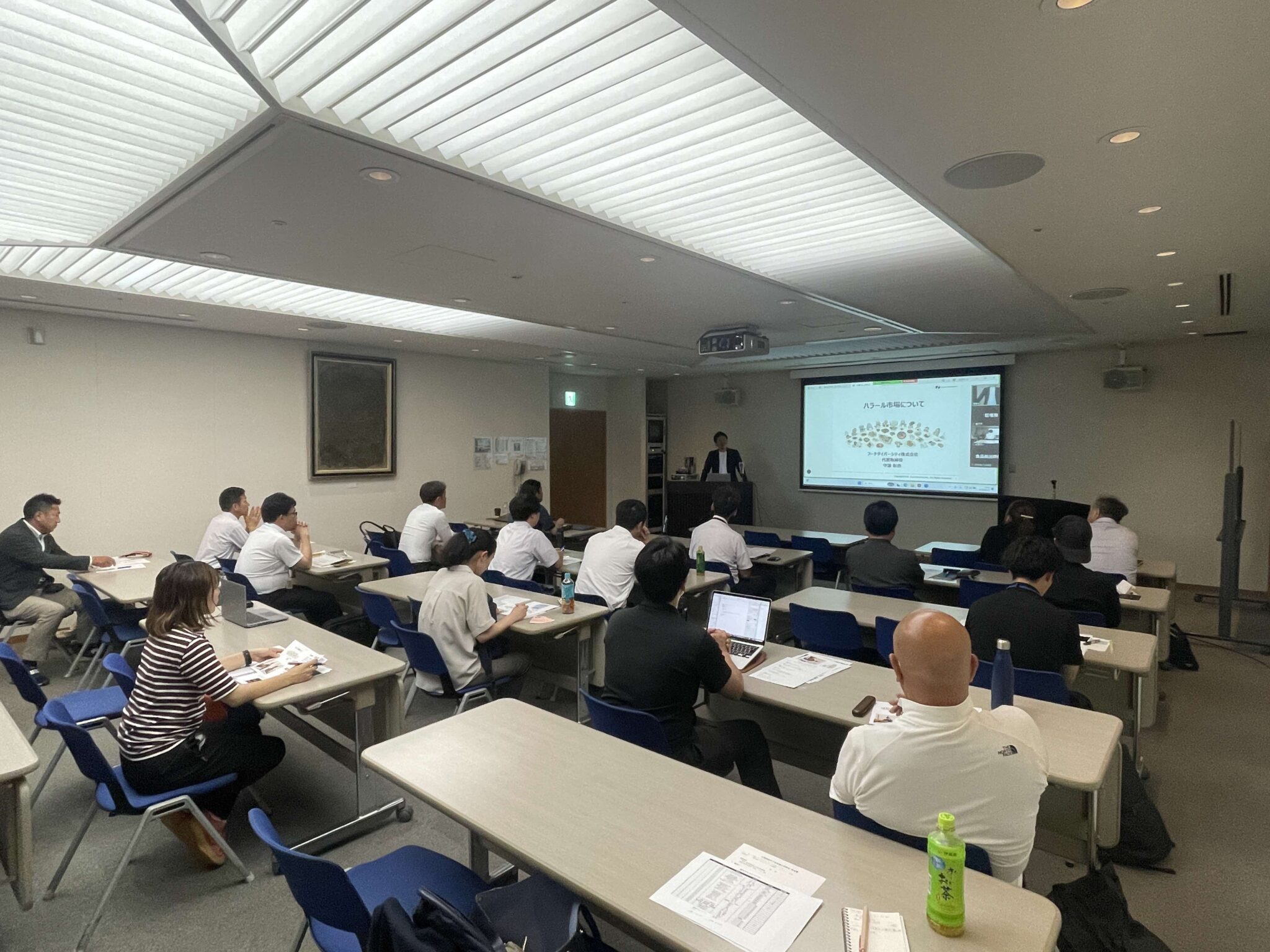 続いて弊社代表の守護からはイスラム教に関する基礎、六信五行、ハラールに関する基礎事項、ハラール認証の役割と必要性、さらに輸出を見据えた製造・表示・原料管理に関する基本的な要件が解説されました。