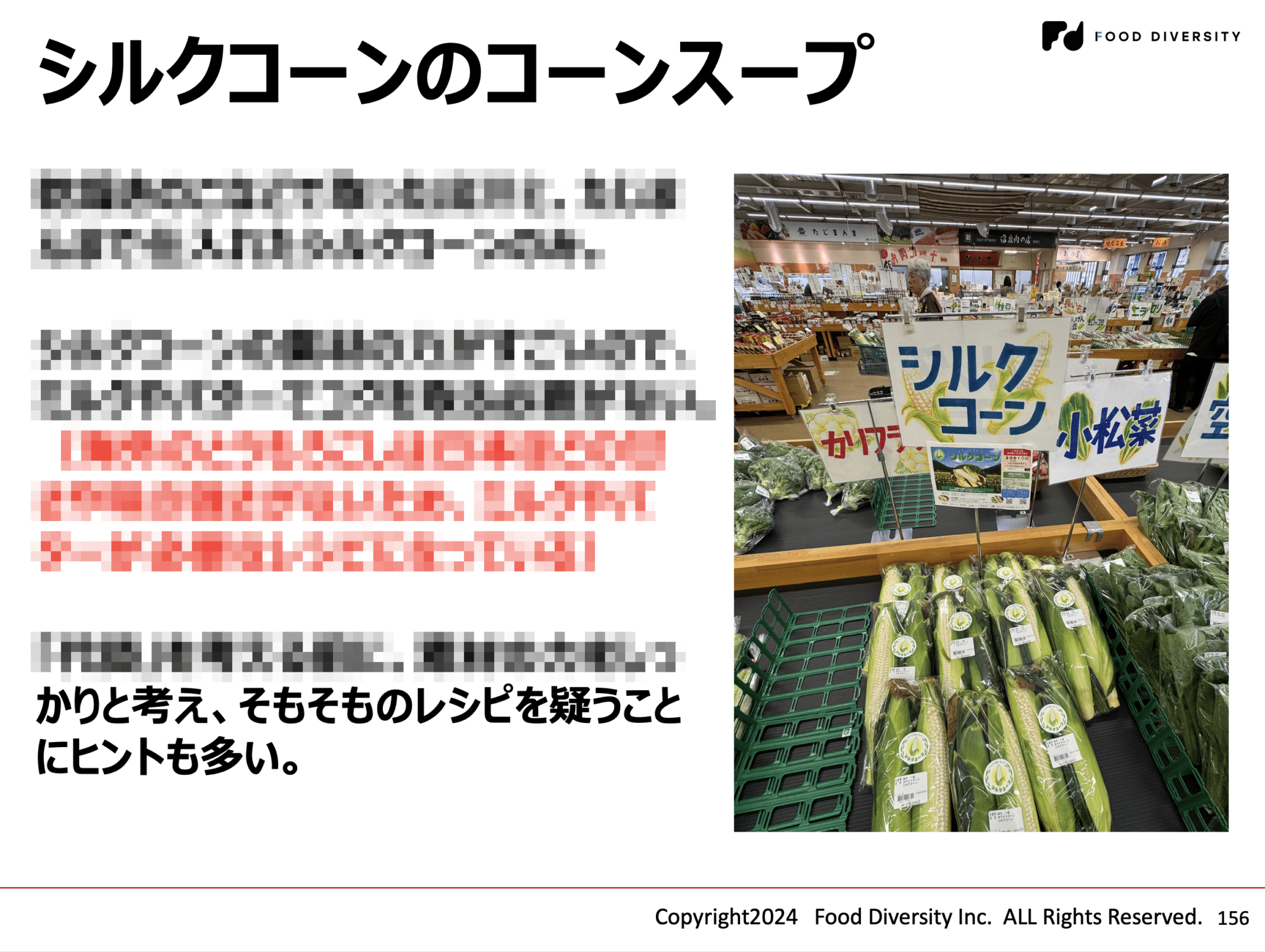 参加者からは「昨今、多様な食ニーズの要望が増えていて、その度に頭を悩ませていたが、共通点を考えれば簡単に対応ができそう。」「既存のレシピを疑うことにヒントが多くあることに気づけました。」「食べられるものと、食べたいものの違いが明確に学ぶことができました。」などの声が上がりました。