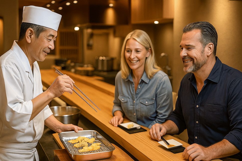 日本には天ぷら専門店という業態があり、職人が目の前で調理し、揚げたてを提供するライブ感は訪日客から非常に人気です。また、一般的な和食が口に合わない訪日客でも、天ぷらなら「美味しく食べられた」と感じるケースも多く、味に関しても定評があります。