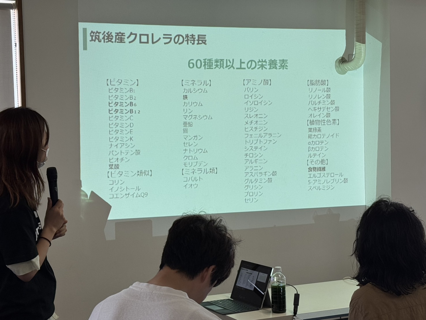 クロレラの栄養について語るクロレラ工業社員