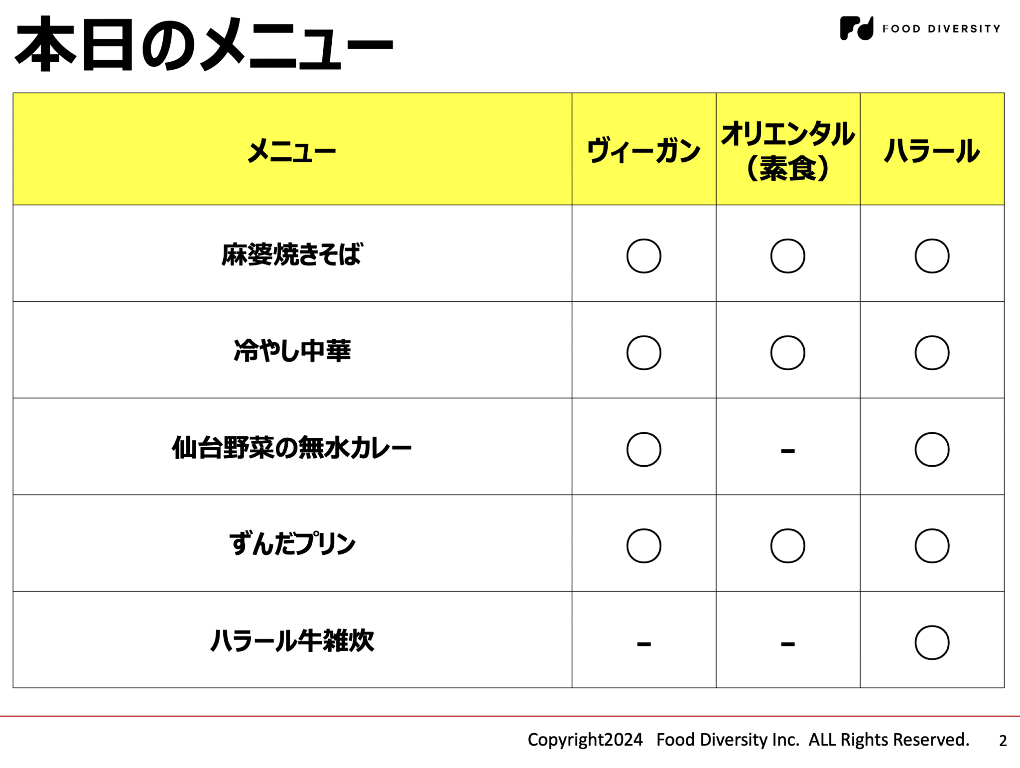 ヴィーガンやハラールなどは一見「難しそう」と思われがちな分野ですが、専用メニューを個別に作成するとオペレーションの負担が大きくなります。そこで、共通点を整理し「みんなが食べられるもの」を一般メニューとして標準化することで、調理現場のストレスを大幅に軽減できることが示されました。