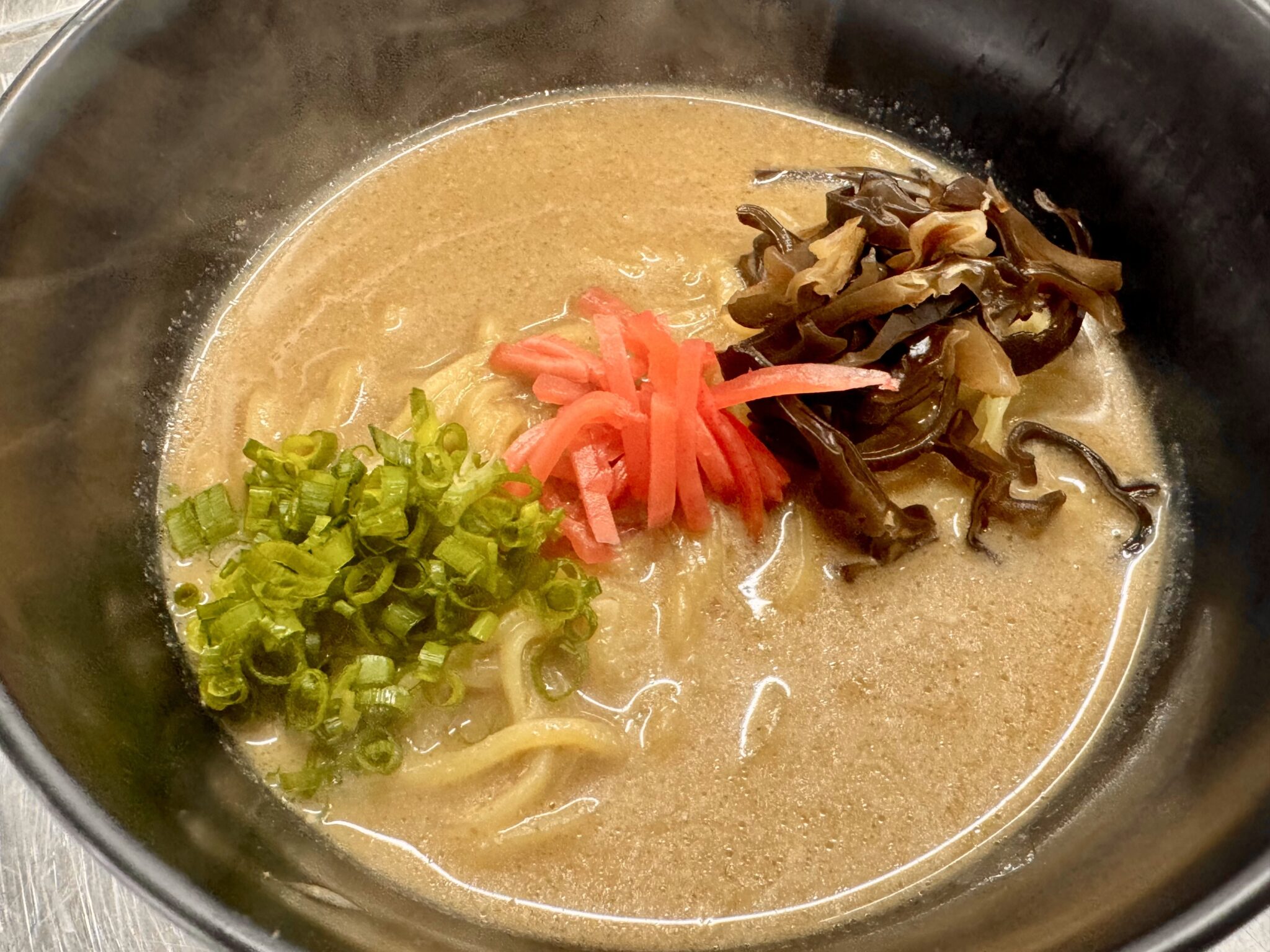 続いて、世界一のヴィーガンレストランとして知られる「菜道」の楠本シェフが登壇し、最初にシェフから試食としてヴィーガンとんこつラーメンとヴィーガンプリンが提供されました。