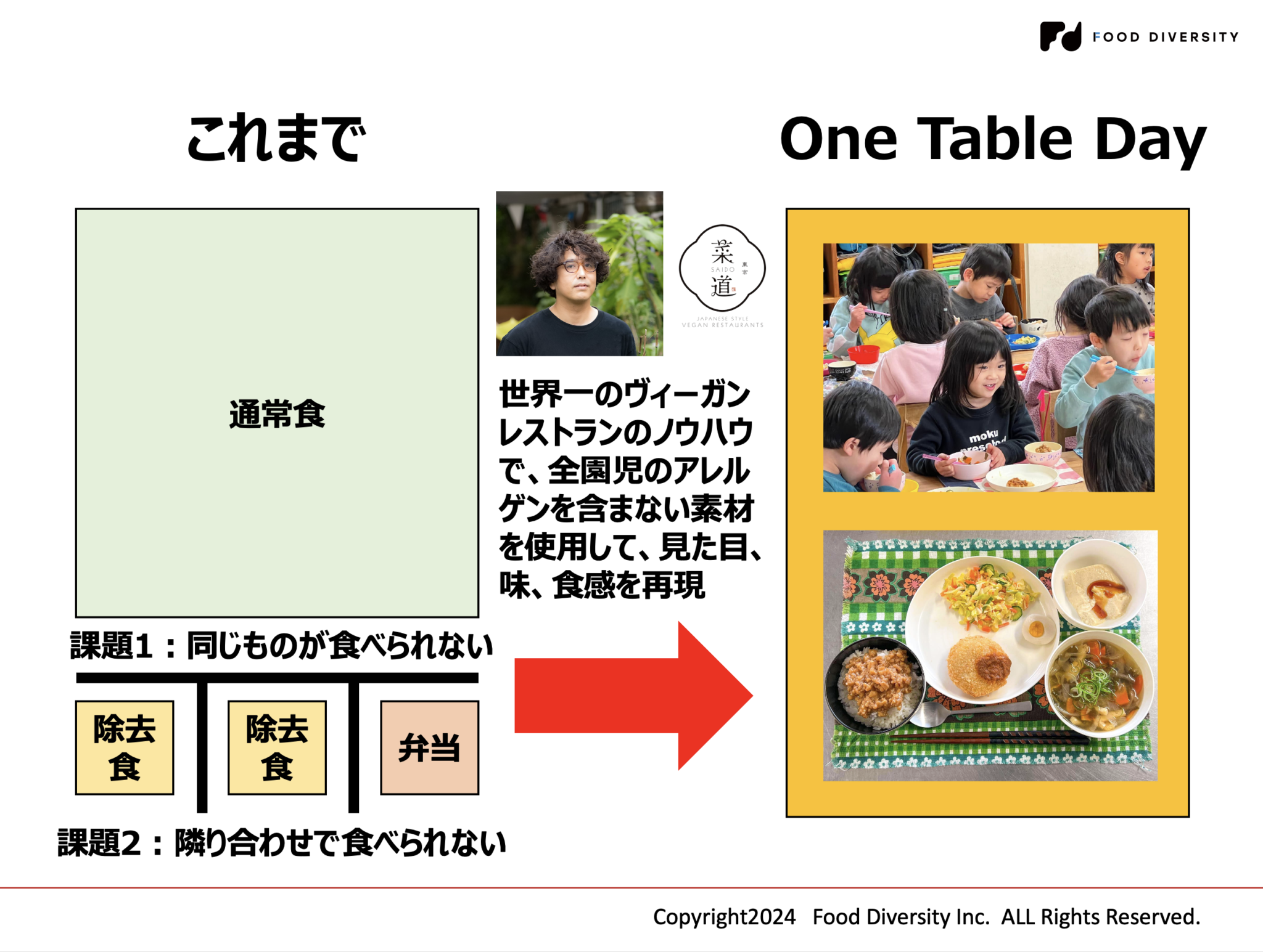 さらに具体的な事例として、姫路市のもく保育園で行っているOne Table Dayに関して、その目的と、これまで行ってきた取り組み、成果、園児やご父兄の反応などについて説明が行われました。
