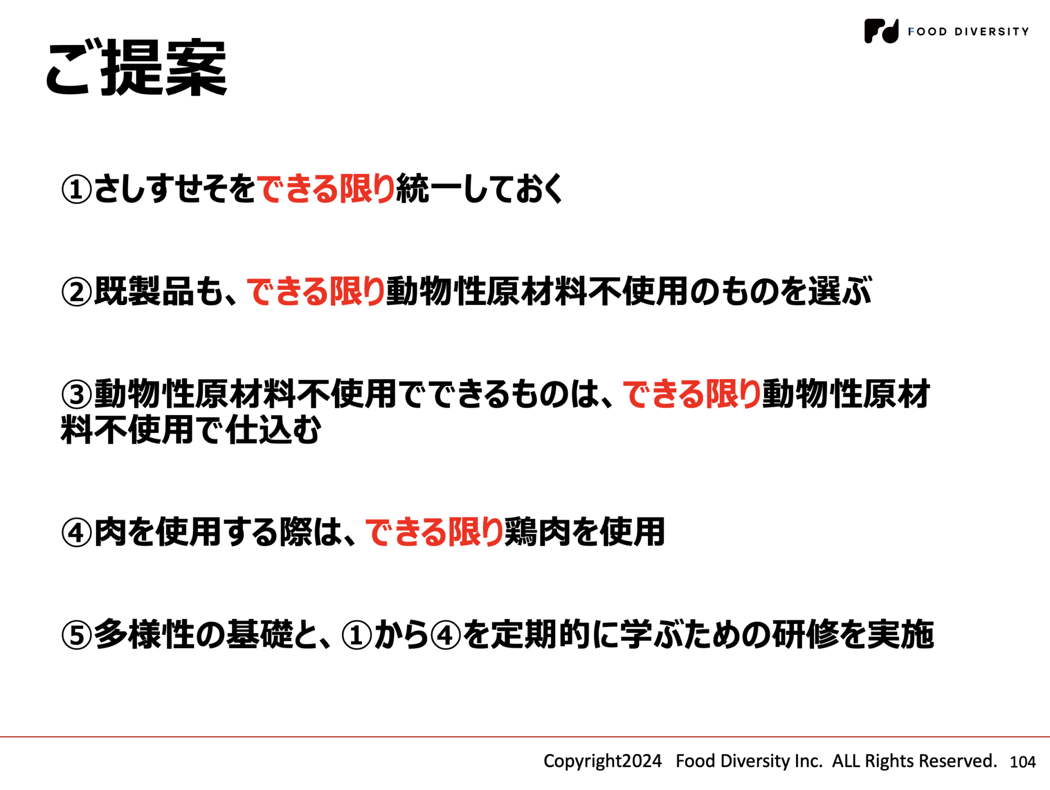 フードダイバーシティ株式会社から給食施設へ行なわれた提案