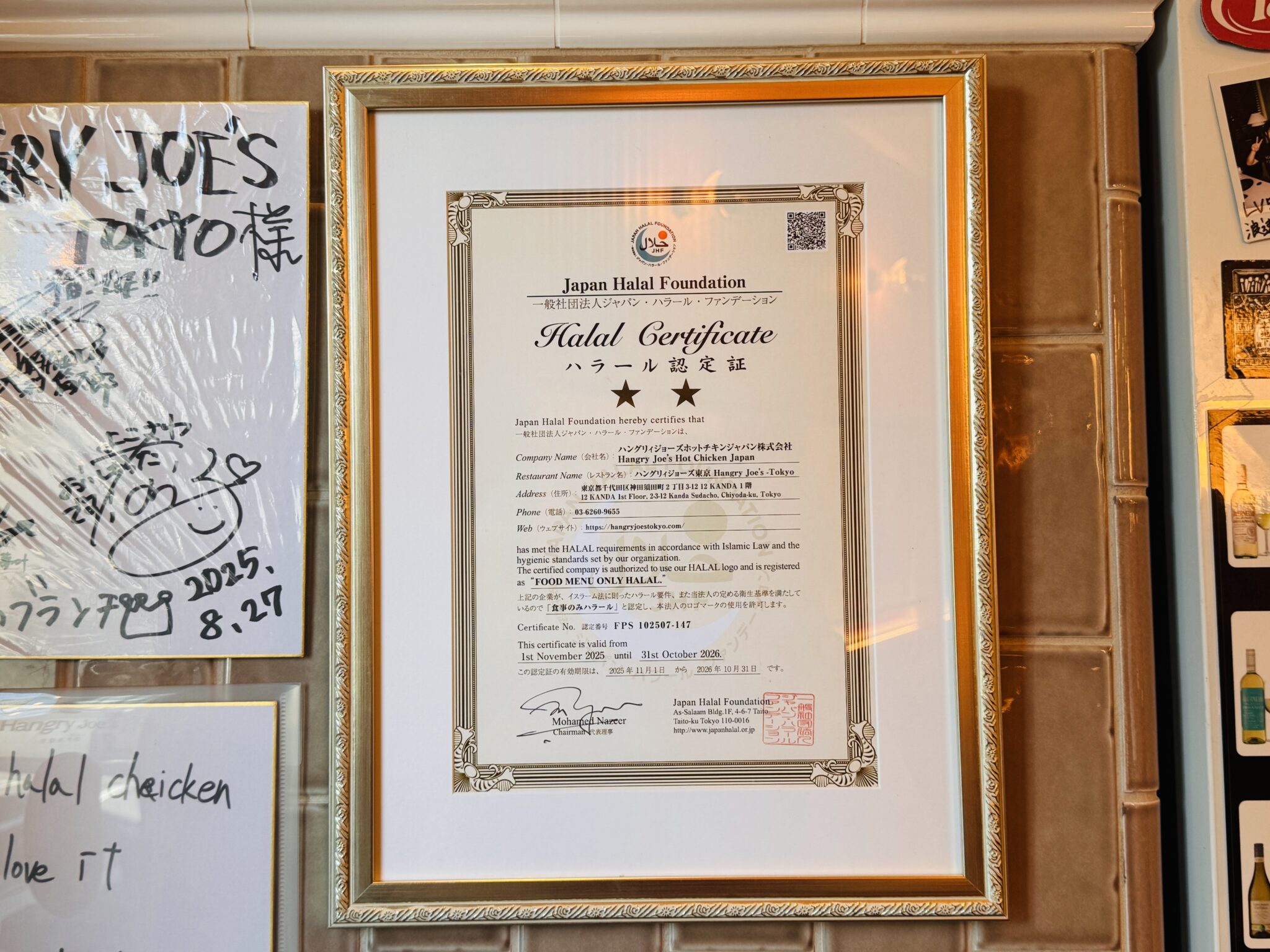 秋葉原の人気ハンバーガー店「Hangry Joe’s Tokyo(ハングリージョーズ東京)」は、2025年11月1日付で正式にハラール認証を取得し、「ムスリムの方が安心して食べられ、かつ味と食べ応えにしっかり満足していただけるハンバーガー」を提供開始致しました。