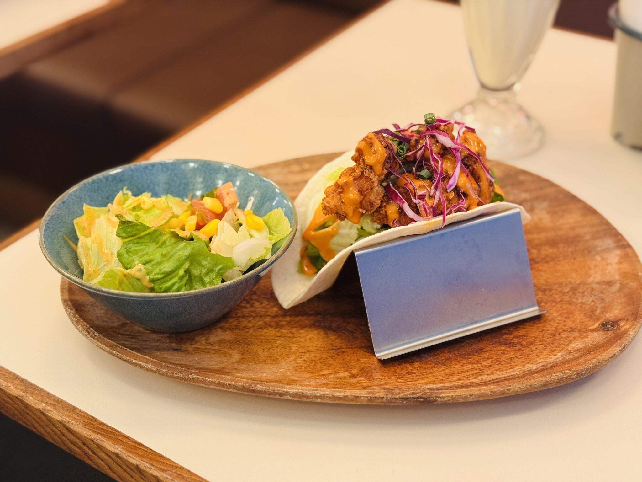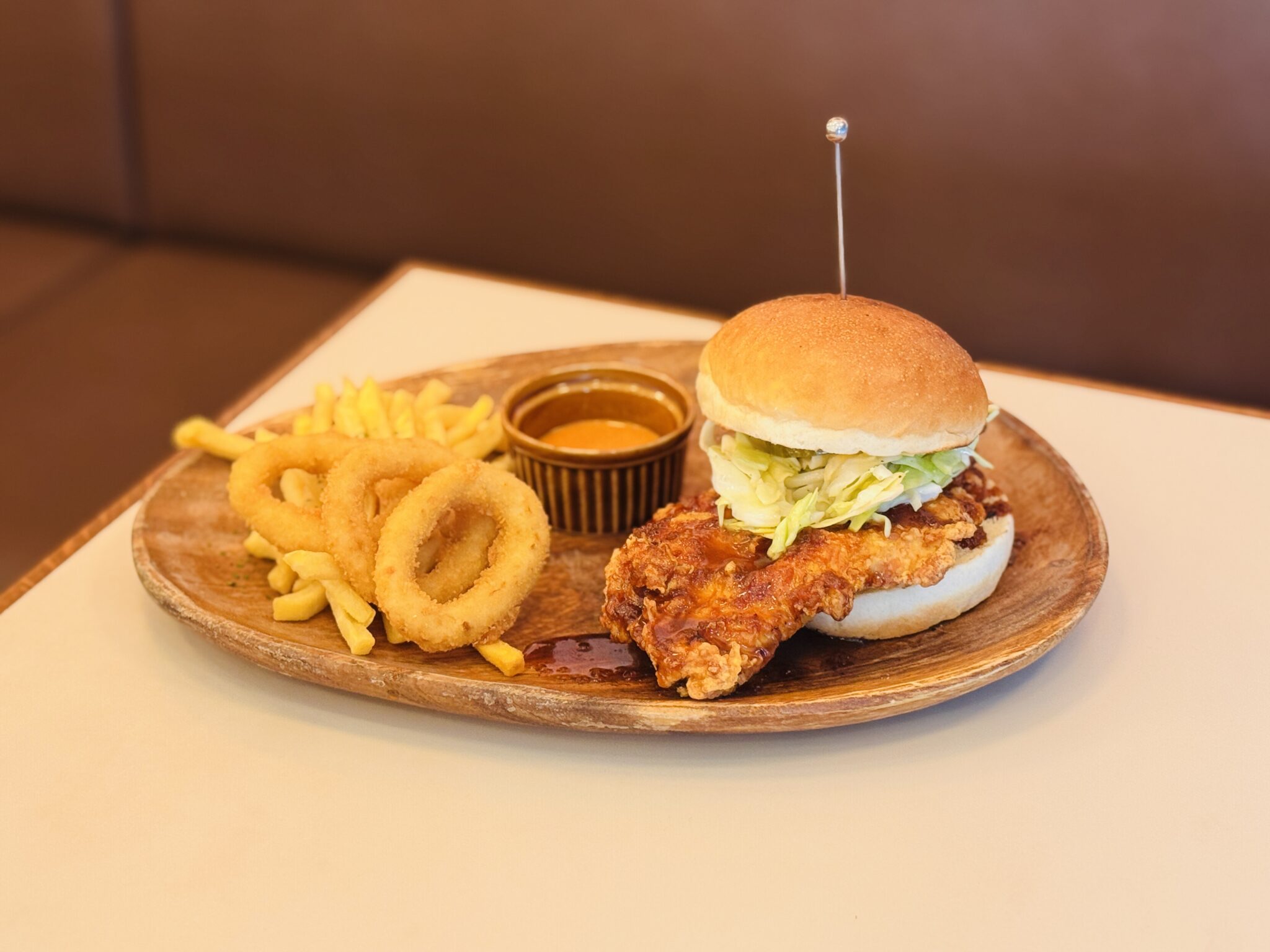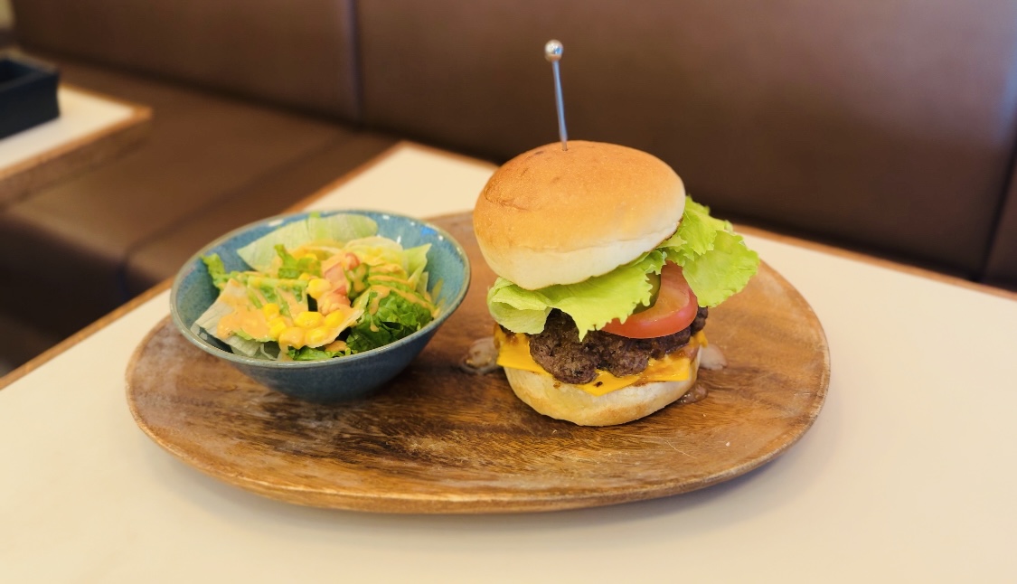 チキン以外の選択肢が欲しい方へは ビーフバーガー がおすすめ。ふんわり柔らかく、噛むほどに肉の旨みが広がります。セットにはサラダもついて、軽めに食べたい日にもぴったり。