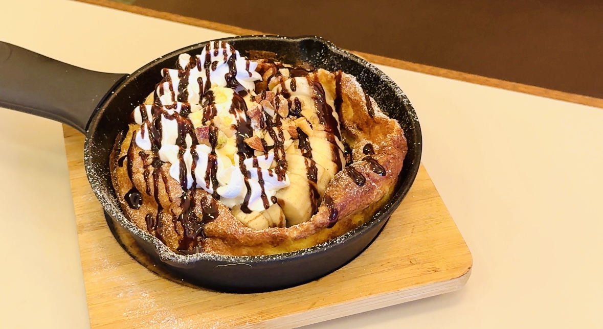 フライパンで焼き上げる少し甘めの“ふわサク”パンケーキ。端はカリッ、中はしっとり。