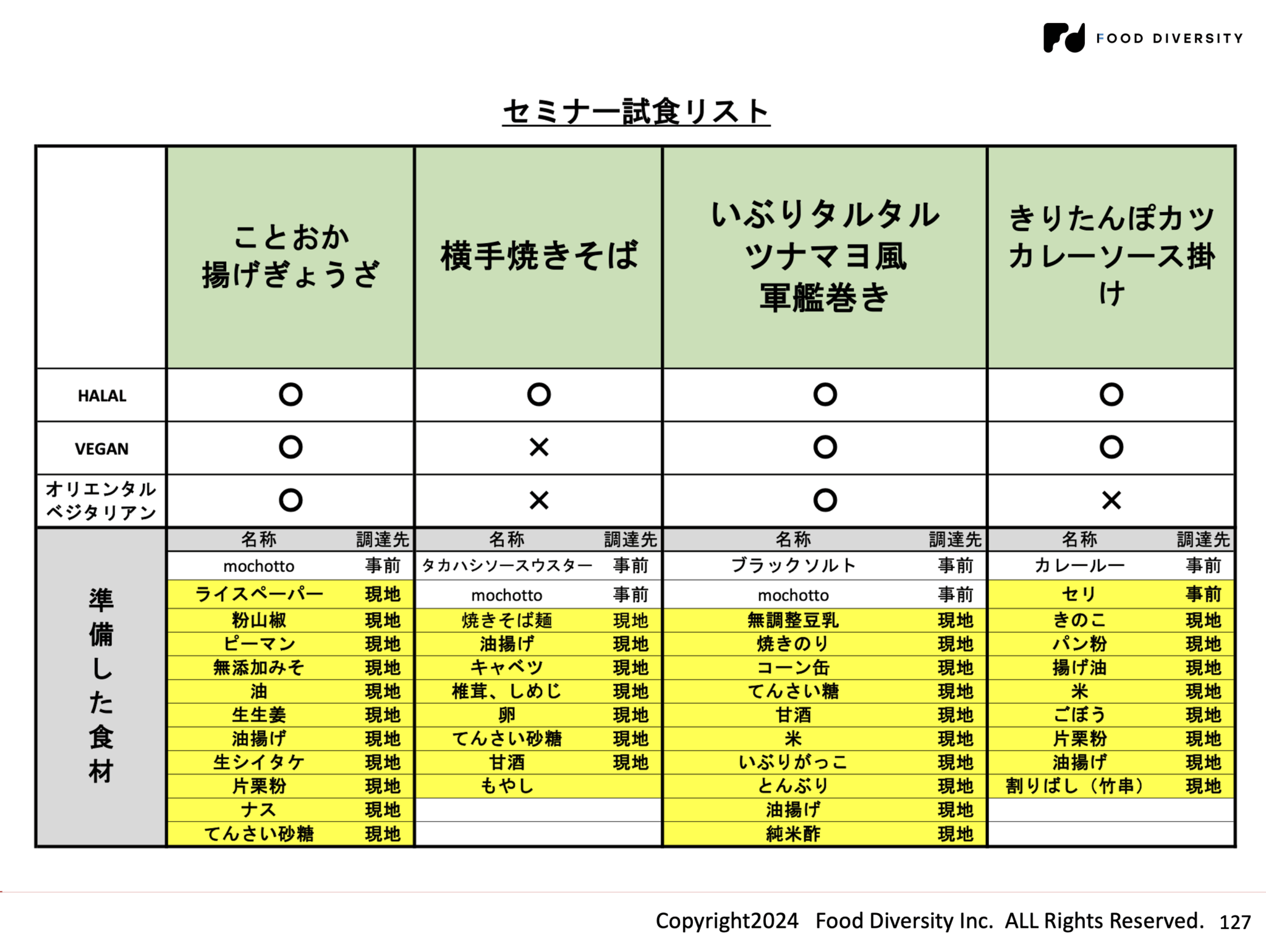 ・フードダイバーシティに対応する場合でも、食材、調味料はほとんどが地元スーパーで揃えることができる