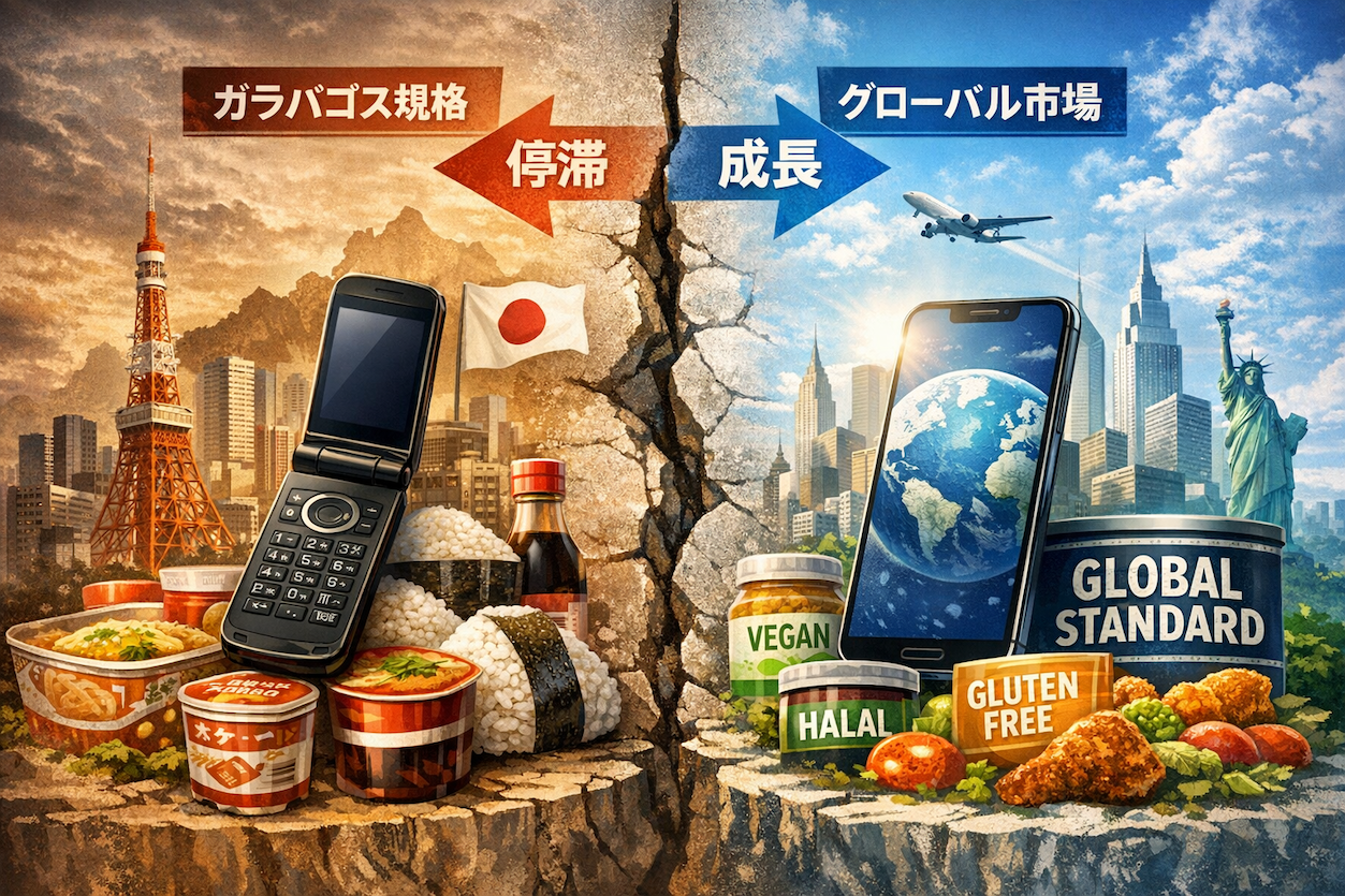 国内市場での成功体験に最適化された結果、世界標準とのズレが拡大し、競争力を失っていく。この構造は、すでに食品業界にも見え始めています。