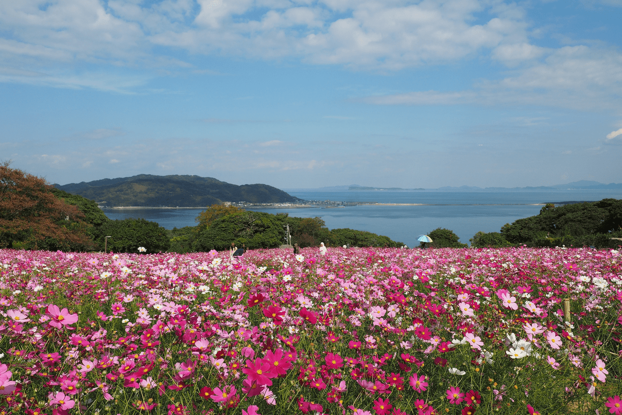 中心街である天神や博多からでも気軽に行くことができ、福岡市民にもおなじみの観光スポット、福岡市西区能古島。周囲12キロのひょうたんのような形をした小さな島は、フェリーで10分ほどで行くことができます。また「花の名所」としてもおなじみのスポットで、広大敷地に咲く四季折々の花は一見の価値があります。今回はそんな能古島の魅力について紹介していきます。