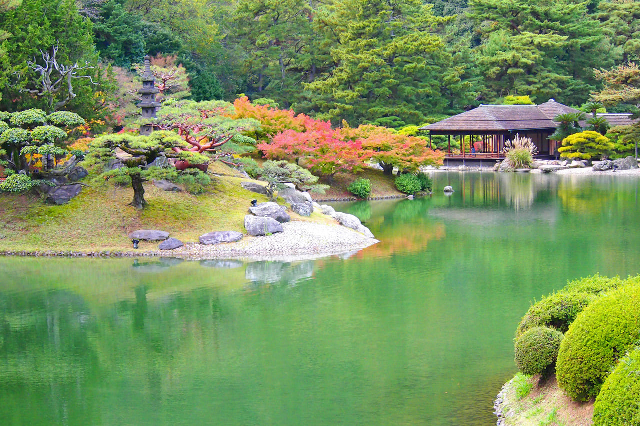 16世紀後半に地元豪族・佐藤氏によって築庭されたが始まりと言われています。その後、当時の讃岐国領主・生駒高俊(いこまたかとし)公によって造園され、現在の原型が形作られました。1642年、高松を治めることになった初代高松藩主・松平頼重(よりしげ)にも引き継がれ、1745年、5代藩主・頼恭(よりたか)の時代に完成しました。