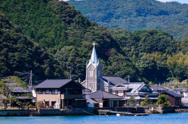 海に面する美しい天主堂。熊本「カトリック﨑津教会」