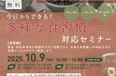 金沢市が「今日からできる!ヴィーガン・ハラール・アレルギーなどの多様な食習慣への対応セミナー」開催