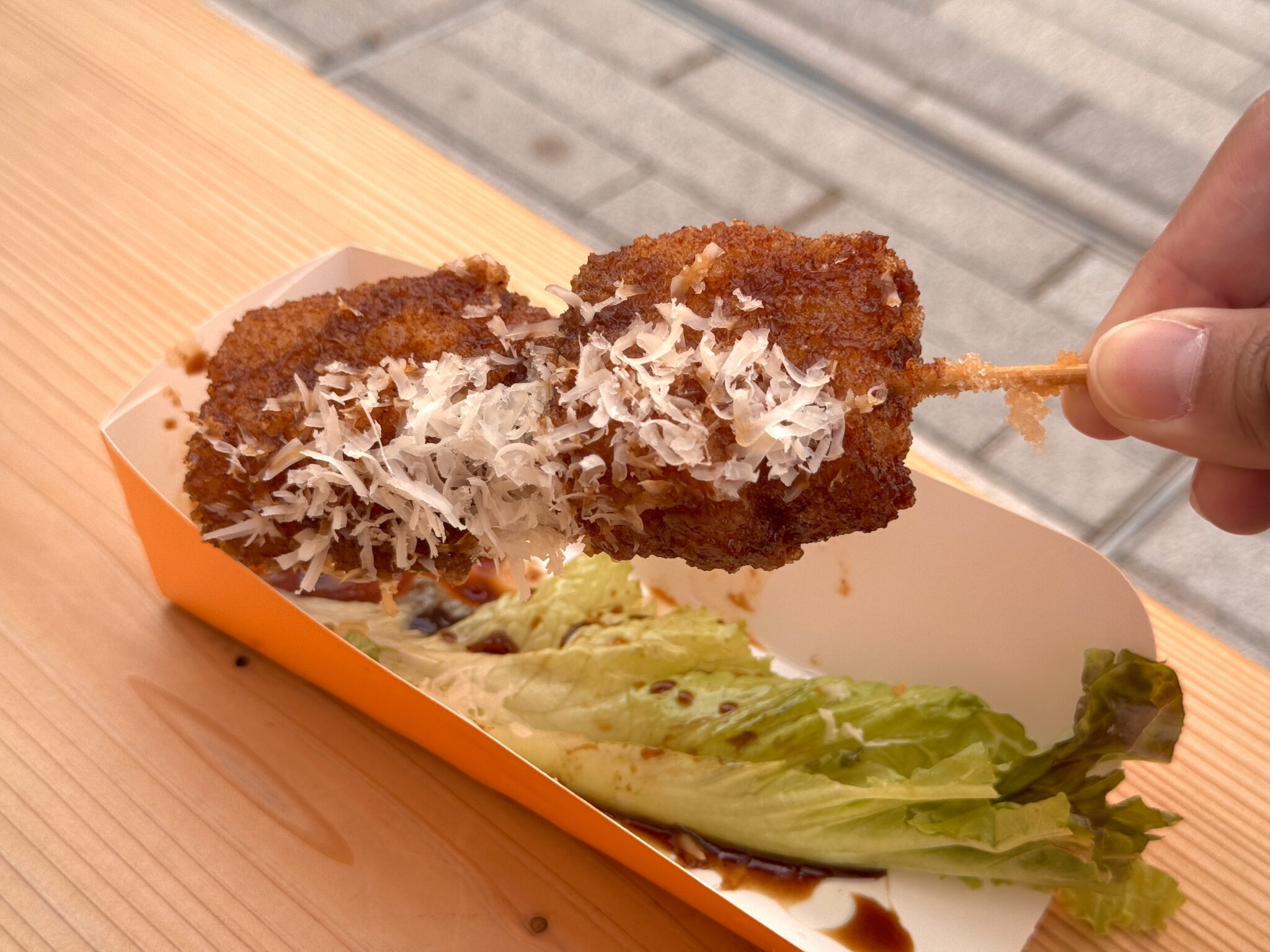 Vegan kushikatsu (750 yen): crispy skewers, Osaka-style