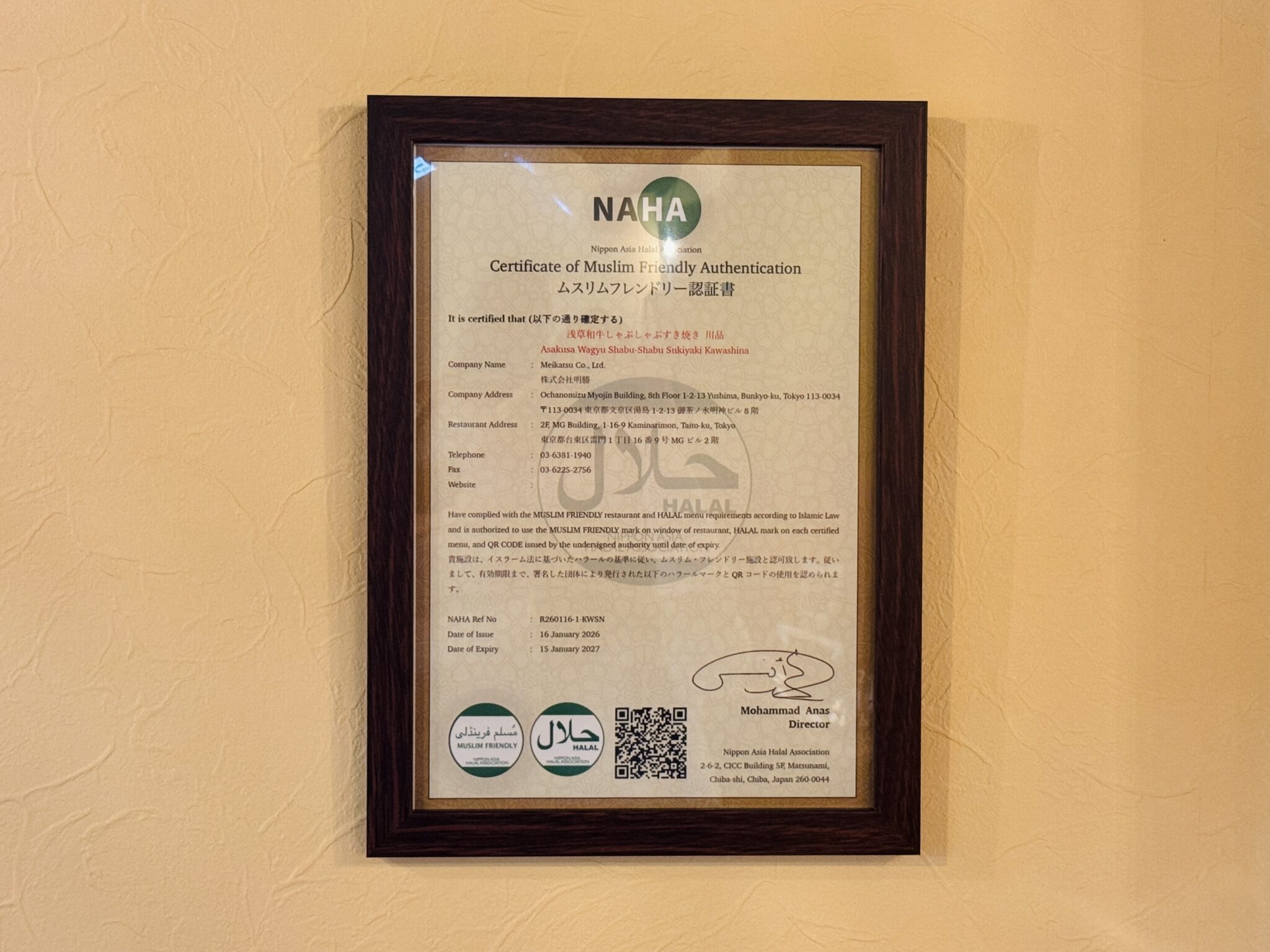 For those exploring Asakusa and looking to experience Japanese cuisine without compromise, Kawashina offers a reassuring option. Combining halal-certified wagyu, attentive service, and a calm atmosphere, it stands as a thoughtful example of how Japanese food culture can become more inclusive—one hot pot at a time.