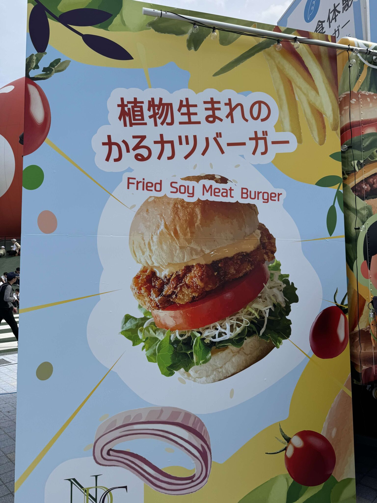 使用日本傳統食材「大豆」與「米」製成的新型植物性食材「かるあげ」,開發出「植物豬排漢堡」、「植物豬排三明治」、「植物豬排套餐」等,適合全年齡層享用。