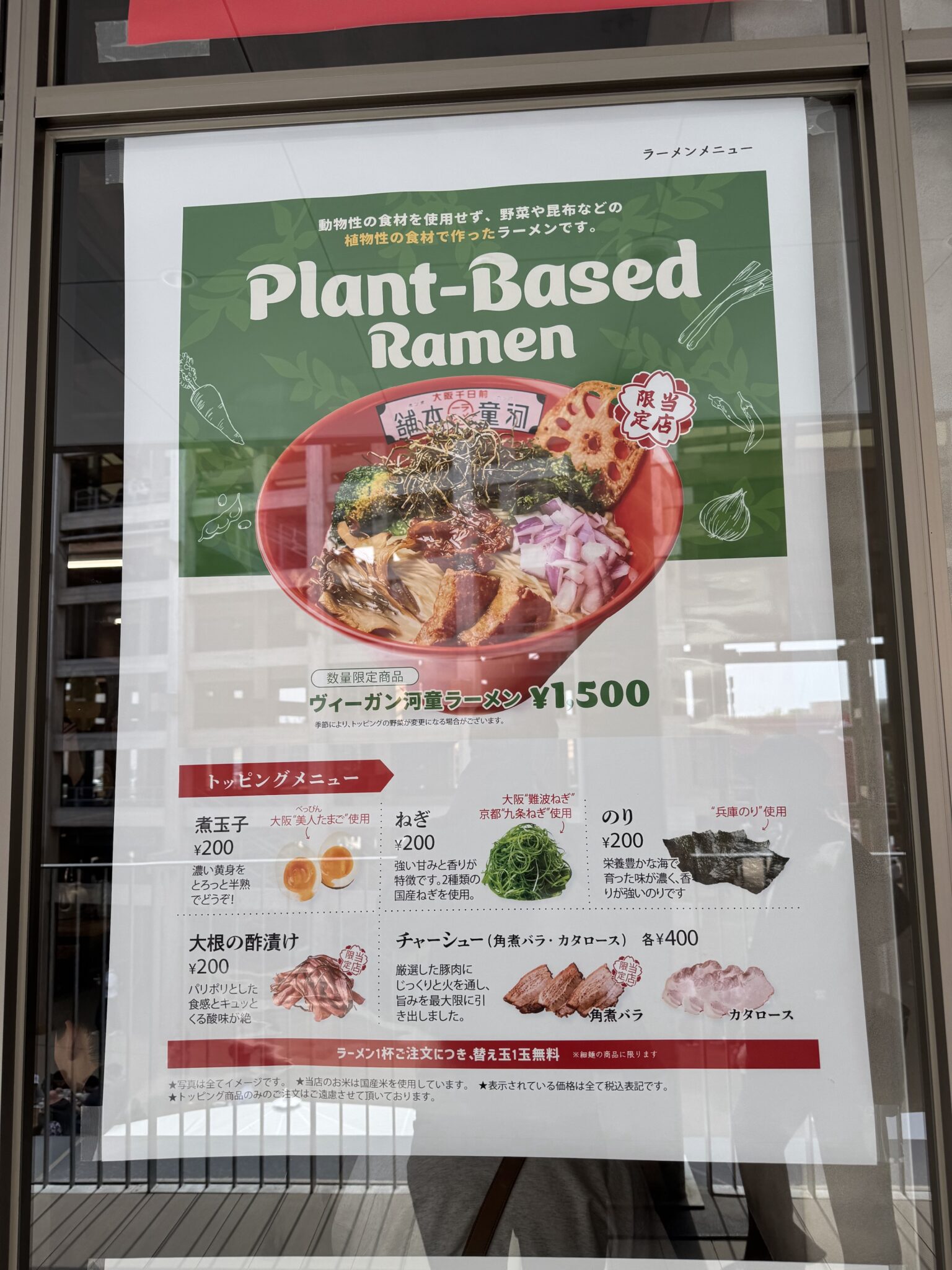來自大阪的拉麵專門店「河童拉麵本舖」在萬博期間推出純素拉麵。湯頭完全不使用動物性原料,卻仍保有濃郁深厚的風味。此外,店內還提供由NAKI Vegan Sweets提供的純素甜點與餅乾。